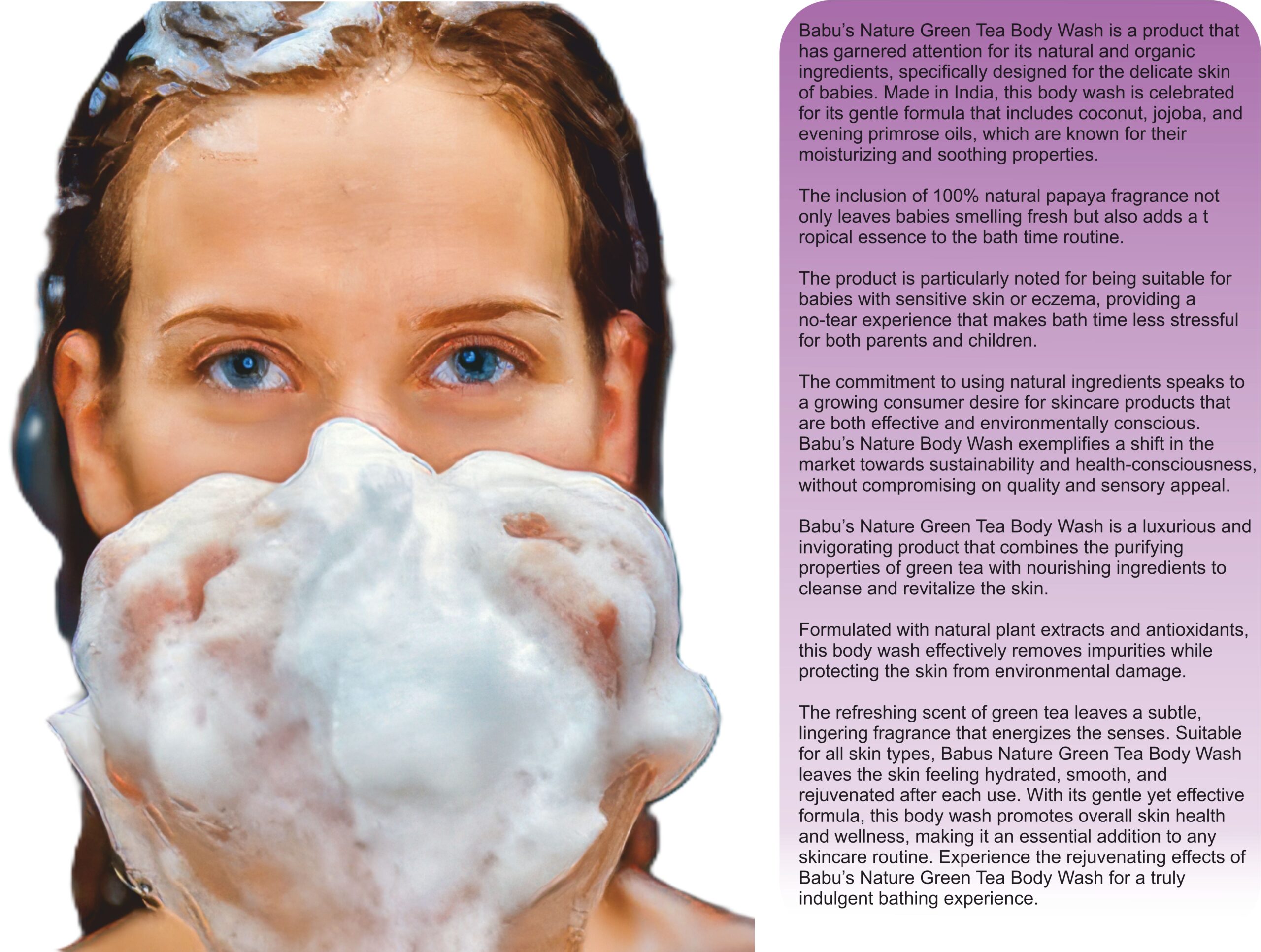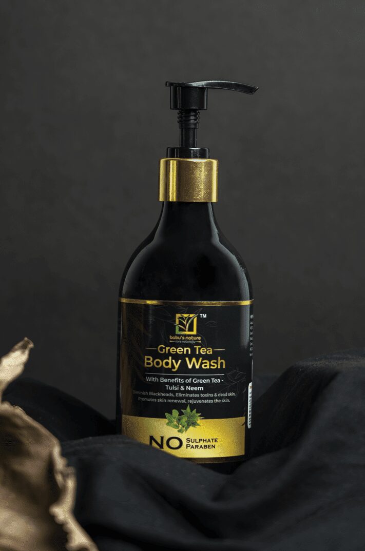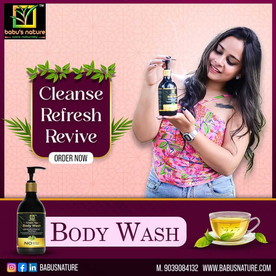 Elevate your shower experience with Babu's Nature Green Tea Body Wash.